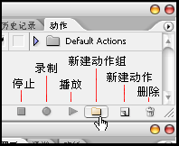 3、点击动作面板下方文件夹状的按钮新建一动作组。(图1);在弹出的面板中将动作组命名为“邮票效果”。
