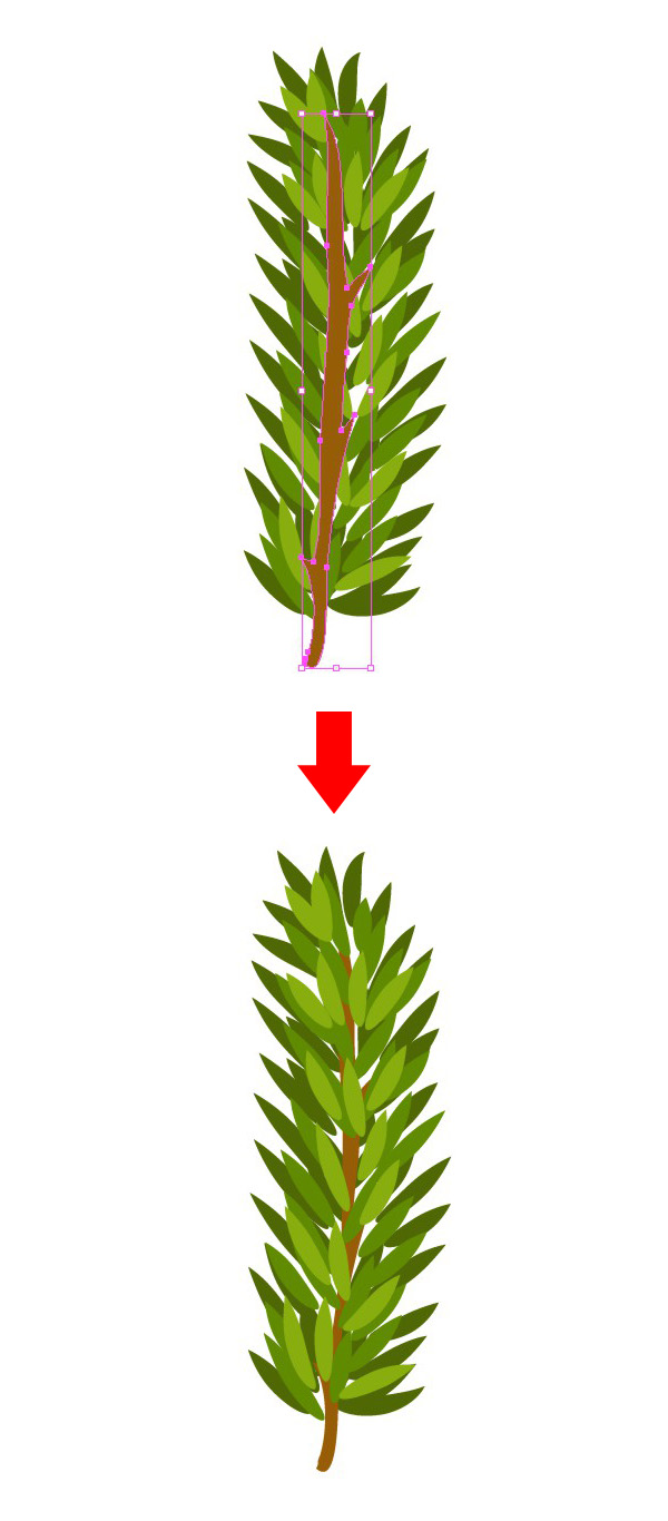 使用【铅笔工具】(N)绘制一个随意的褐色细枝干。不要太直,太光滑。让它看起来是弯曲和打结的。画完后之后,将它【置于底层】(Shift-Control-[ ),放在叶子的下面。