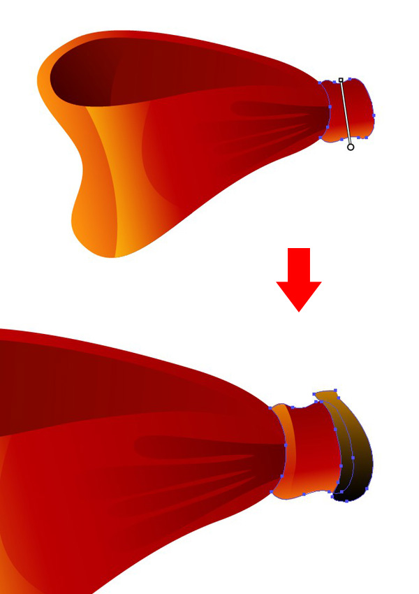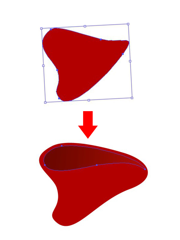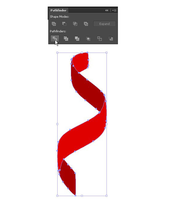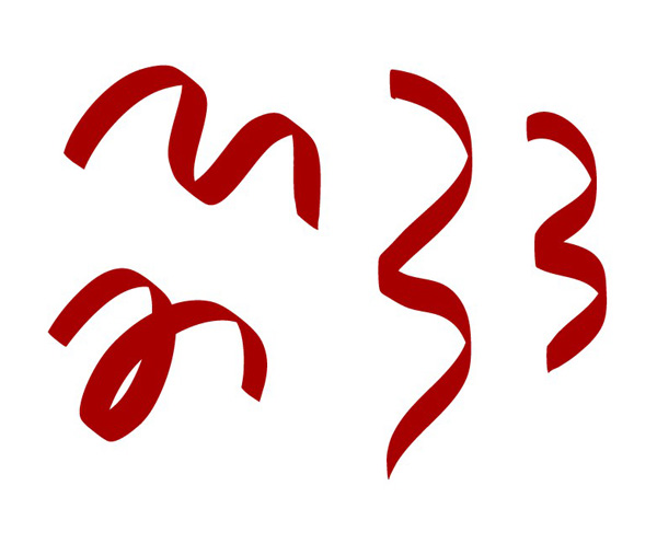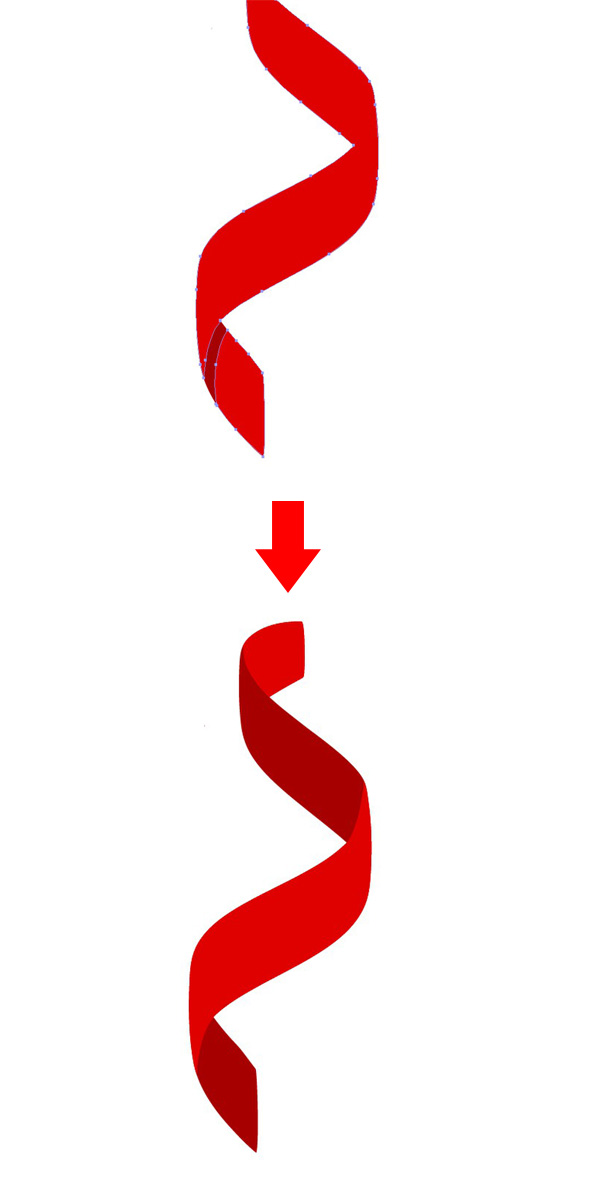 选择你最喜欢的笔触,并【扩展】它。执行【复制】并贴在【前面】(Ctrl-C > Ctrl-F)。用鲜红色填充上层的形状。选择上层的形状,用【橡皮擦工具】(Shift-E)小心地擦除缎带暗色的部分。