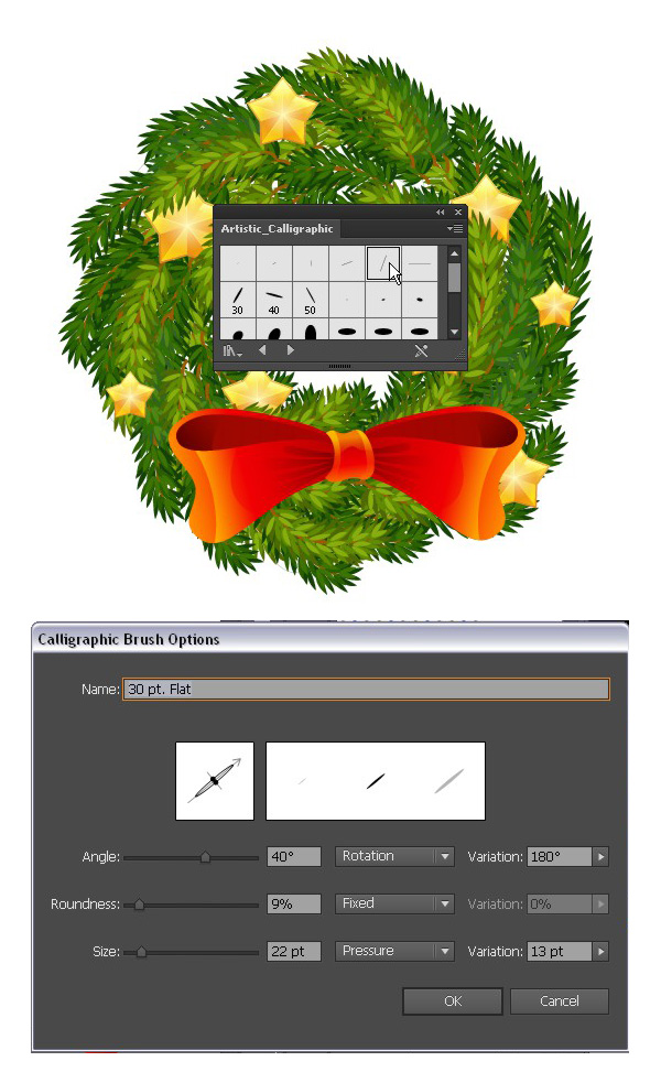 圣诞素材快速绘制,AI绘制圣诞花环图文教程详解