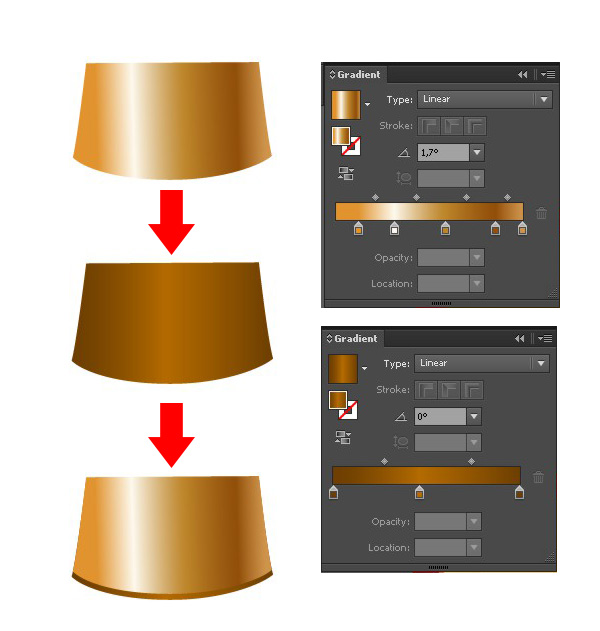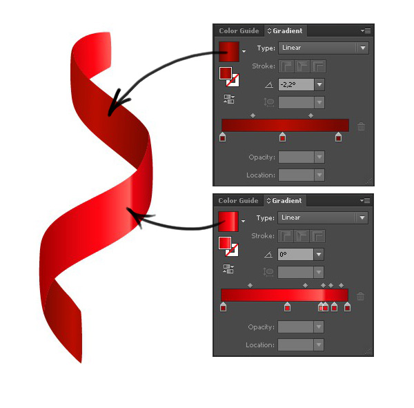 为了使缎带更加写实,我们用亮红色的线性渐变填充“上层”的部分,用深色渐变填充“底层”的部分。
