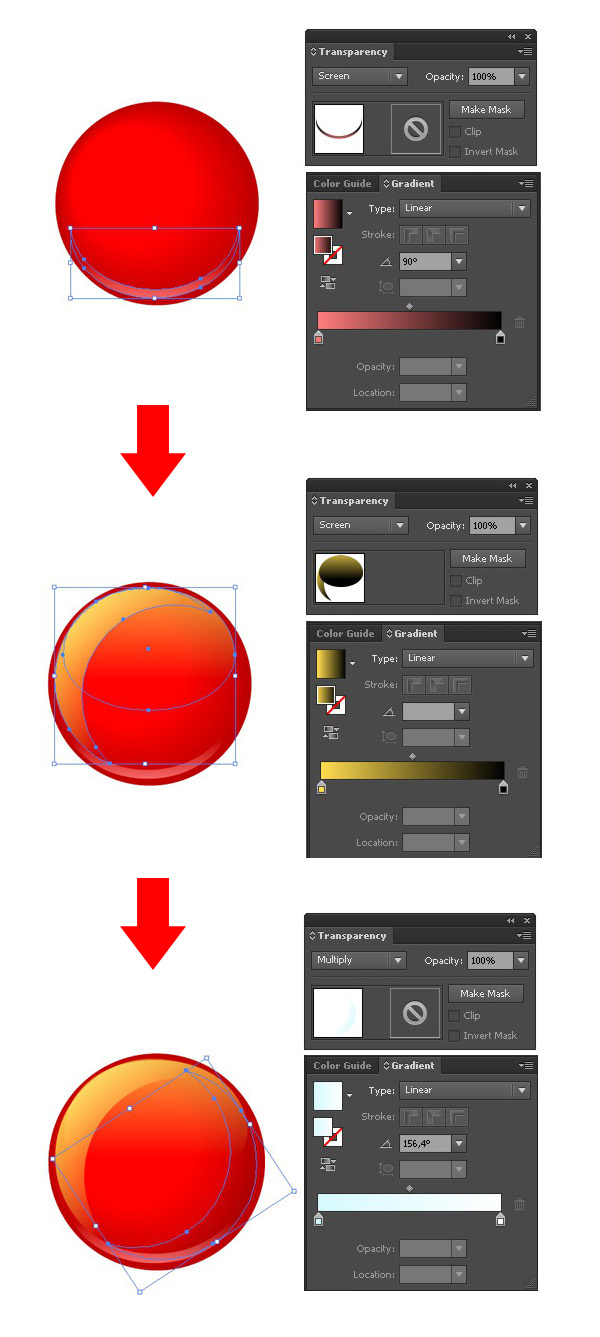 添加一些高光和反光,让球形看起来更透亮更像玻璃材质。利用各种不同的线性渐变,设置【滤色】或【叠加】的【混合模式】,就像我们之前做的那样。