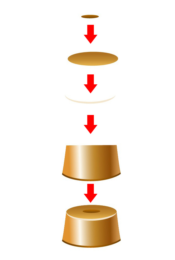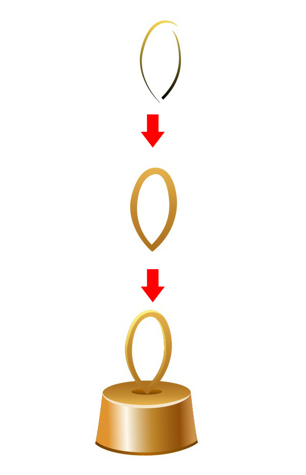 最后,还有球顶部的小帽子。用【钢笔工具】(P)绘制一个适当的形状,【复制】并【贴在后面】。给第一形状填充金色质感的线性渐变,第二个则用褐色金属质感的渐变。