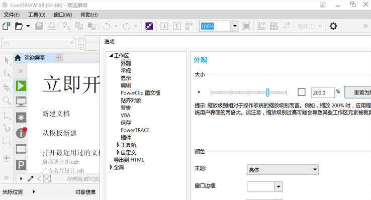CorelDRAW X8图文基础教程,教你如何设置UI界面缩放级别