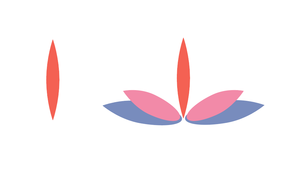 花瓣的形状,例如梭形的绘制就是先绘制一个长形椭圆,然后运用锚点工具点击上下两端的锚点,锚点工具会将两端由圆弧状变为锋利的尖头形。花瓣对称处理,注意它们的上下层叠顺序。填充好你已经放在色板中的颜色,可以略调整。你要学会用简单的形状去将自己的奇思妙想表达出来。完成后将这些图层编为一组。