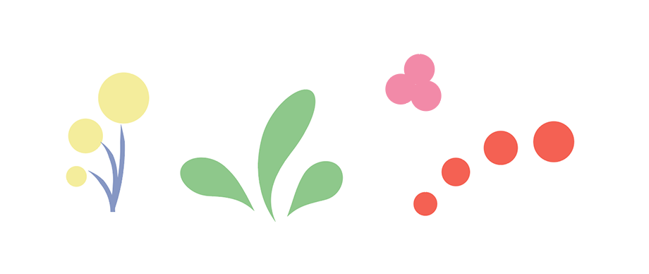 花朵的绘制你可以运用旋转工具的原理,让圆形根据同一角度不断旋转出一个较为齐整的花型。而另外一种自由形态的花形更多需要的是钢笔工具进行绘制。