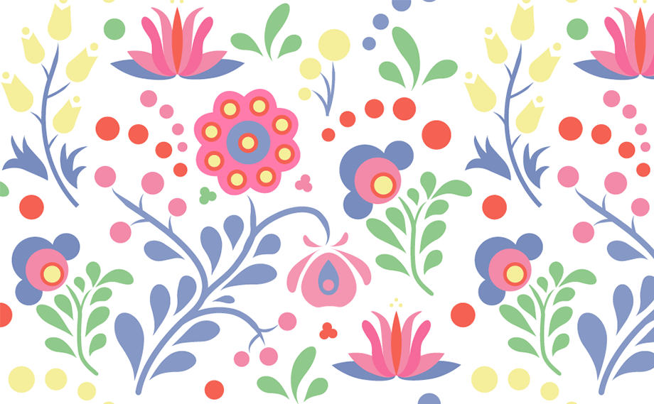 民族风的图案大概就是最好的表达异域风情的运用。这类刺绣风格鲜艳活泼,常常是以花朵、藤蔓植物或鸟作为元素进行设计,如果我们能够绘制出民族风无缝纹理图案效果,运用在设计中任何能体现异域风情的地方都会有不错的表现。