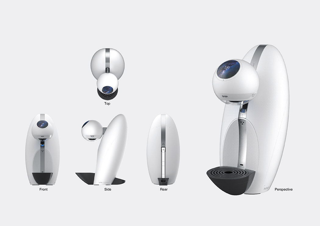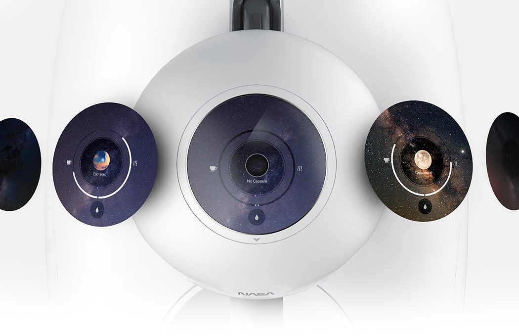 设计师Younggyu Kwon将太阳系融入到咖啡机的设计当中,开发了这款名叫Dot/Dot咖啡机。机器的外观采用火箭和飞船的混合式设计,当你塞入一个地球胶囊时,咖啡机上的屏幕面板则会出现地球的画面,指尖触摸开启运行后,屏幕中的地球就会慢慢自转,同时咖啡也会在数秒后倾流而出,仿佛你是在用一颗地球泡了一壶咖啡。