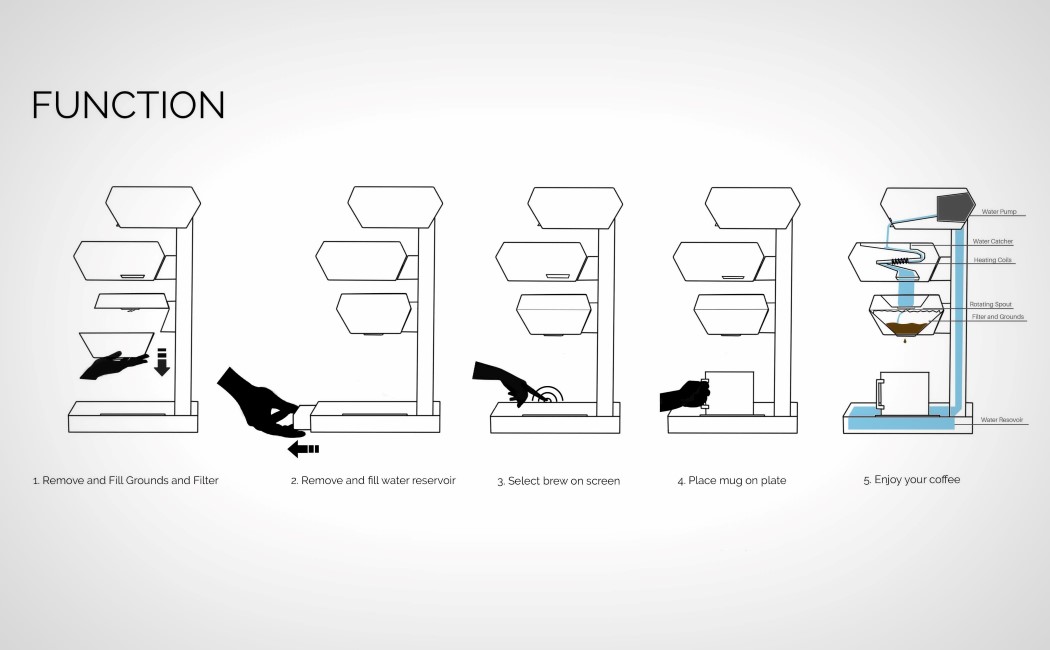 瀑布式创意咖啡机设计,使用价值与艺术观赏性兼得