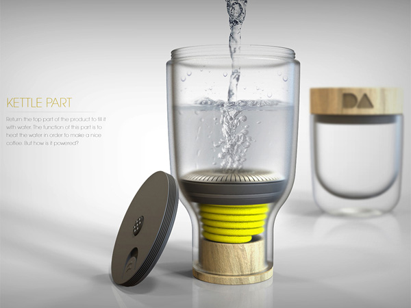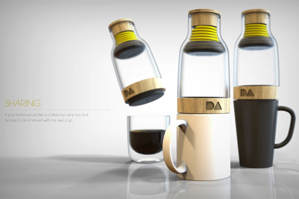 快节奏的城市生活,高强度的工作压力,使得咖啡已经成为很多上班族每日不可缺少的东西了。但即使再忙碌,也应该适当的提高自己的生活质量,哪怕只是一杯咖啡,也要尽情的享受这百忙之中的美妙时刻。Antoine Beynel设计的这个自由组合咖啡机是一个非常小巧,方便的咖啡机设计。它的样子像一个普通的塑料瓶,但是它却包括了盛水容器,煮水,咖啡容器,USB插头,正常插头等多种功能。只要带上它,用户不需要其他任何设备的帮助就可以随时喝到香浓可口的咖啡,避免了各种尴尬的情况发生,非常适合忙碌的上班族和外出旅行的用户使用。