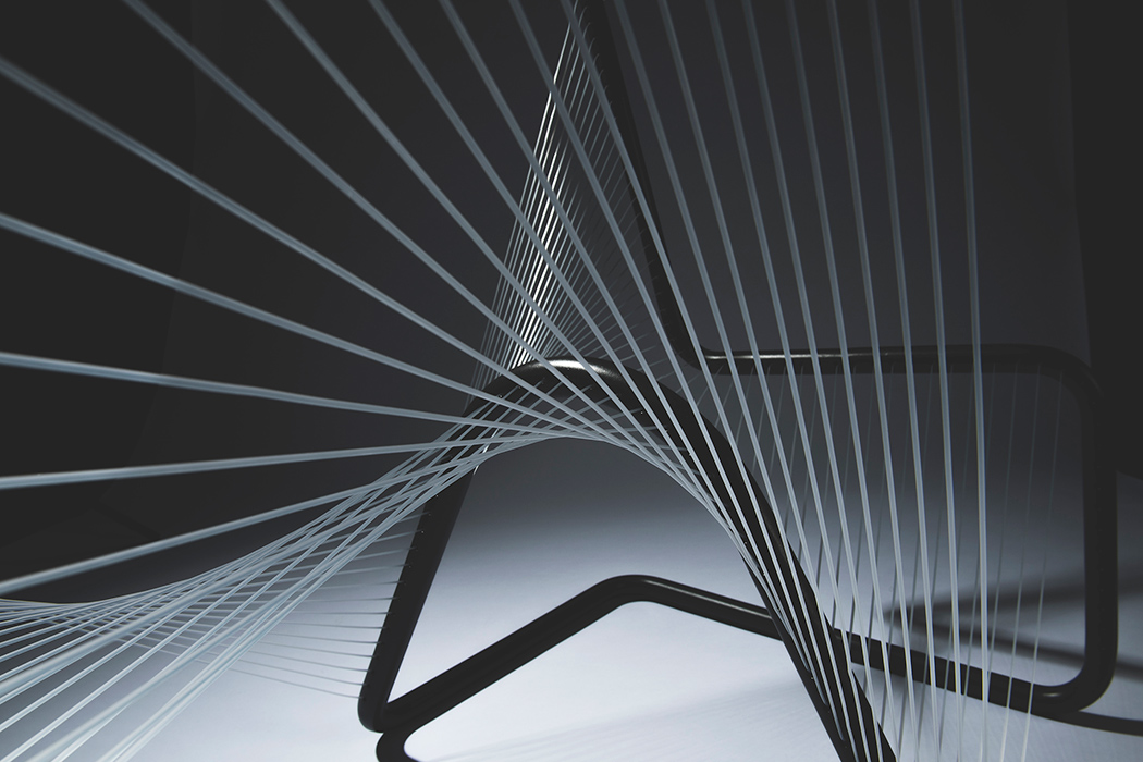 这是设计师Clara Schweers设计的一款极简双人座椅Saitens。这款座椅的设计灵感来源于达芬奇的一张阳光射向抛物线镜面的手稿设计,设计师只使用直线段便创造出有机的曲面形态。从概念角度看,Saitens探索了人与人之间的沟通,坐在座椅另一端的可以是朋友、爱人或是陌生人。由单独一根高强度钓鱼线穿插交织构成了两个完全相同的座位,两个座位分别朝向两侧,整个座椅呈中心对称,形态平衡且稳定。此外,两个座位间的联系既保持了一定的亲密度又巧妙避免了直接身体接触,形成一种微妙的沟通关系。