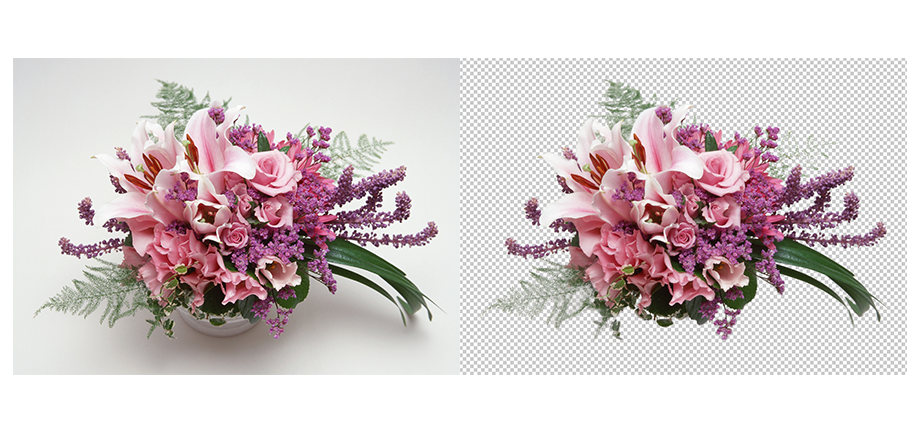 要寻找主角并不那么容易,如果你自己刚好手边有一束花就再好不过了,但如果没有,你需要在万千图库中淘一淘。因为要嵌入文字,因此你最好找那种容易被嵌入的,背景为白色的花束,这样就很容易将花从背景上分离出来。其次,你的花束最好全部入镜,这样可以不用受边缘的干扰。当然,你有特殊的构图创意就更好。但今天我们分享的办法是让花束保持在画面中心的构图。