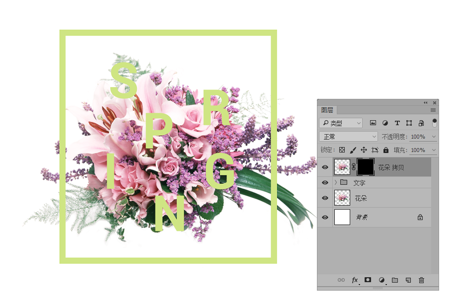 PS蒙板实例技巧教程,教你如何用PS制作趣味花艺文字