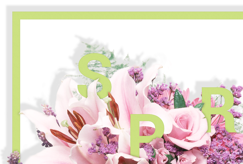 字体的颜色我选用的是一种略带黄色的绿色,我的建议就是字体一定要和花朵区别开来,因此大胆运用对比色的做法也未尝不可。也刚好契合我写的英文“spring”的主题。