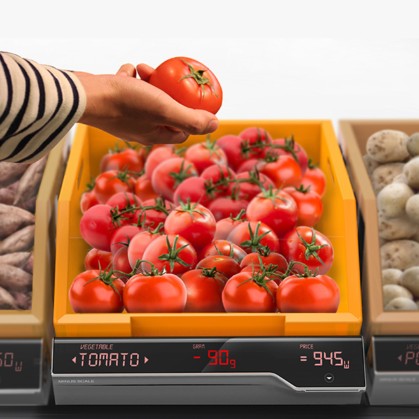 通常情况下,我们在超市买菜的方式都是选好菜并用袋子装起来后再拿去称秤,可这款电子秤通过做减法的方式让这一切倒过来了。例如,如果你准备买番茄,番茄托盘下面的电子秤显示屏会显示当前番茄的总重量,当你取出选好的番茄以后,电子秤会减去相应的重量然后将对应取出番茄的价格标签打印出来,这样不仅节省了很多时间,还省去了我们排队称秤的麻烦。