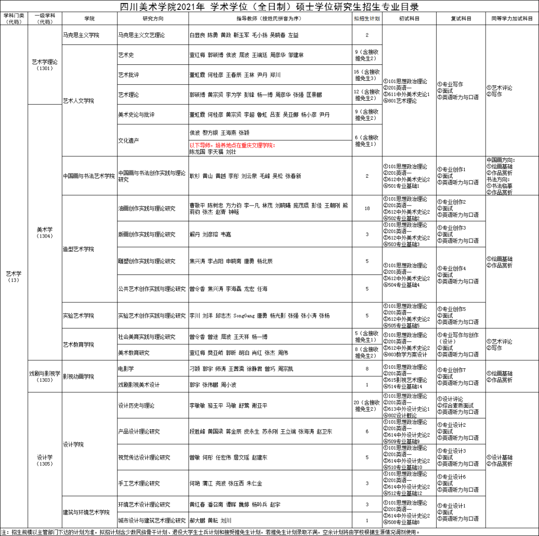 1.我校接收推免生的专业目录及办法,详见《四川美术学院2021年接收校外推荐免试攻读硕士学位研究生工作实施办法(试行)》。