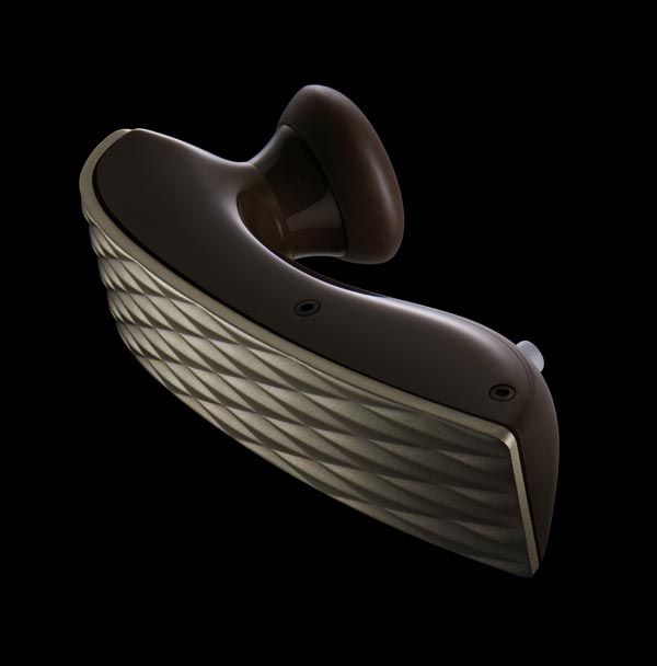 来自aliph生产的新款Jawbone 蓝牙耳机,最显著的它的外表面的钻石切割装饰面,还有就是耳挂的简化。在这里找不到按键装置,它都被隐藏在外壳底部了。新款的 Jawbone 有三种颜色供选择,黑色、银色和玫瑰金。