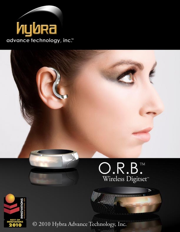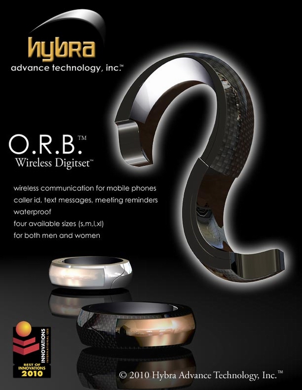 高科技蓝牙耳机(O.R.B. Bluetooth)是一个可以作为戒指的蓝牙耳机,是最具科技感的戒指。Orb Bluetooth蓝牙耳机在不使用的时候可以戴在手上作为戒指,电话来了把它转成S型戴在耳朵上就能立即通话,还是有个小小的FOLED屏幕专门显示来电和日期。