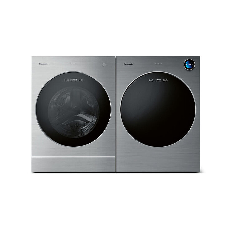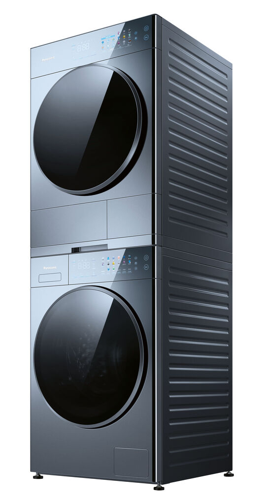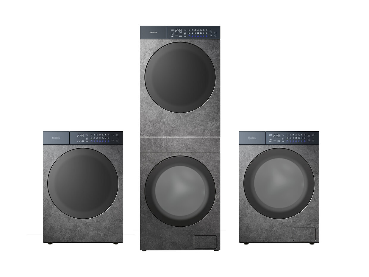 松下Alpha Set的极简美学在某种程度上是创新控制面板的结果,该面板的尺寸不超过手掌。旋转旋钮允许直观操作洗衣机和烘干机组合,并具有磁性,便于定位在优雅的不锈钢机身上。