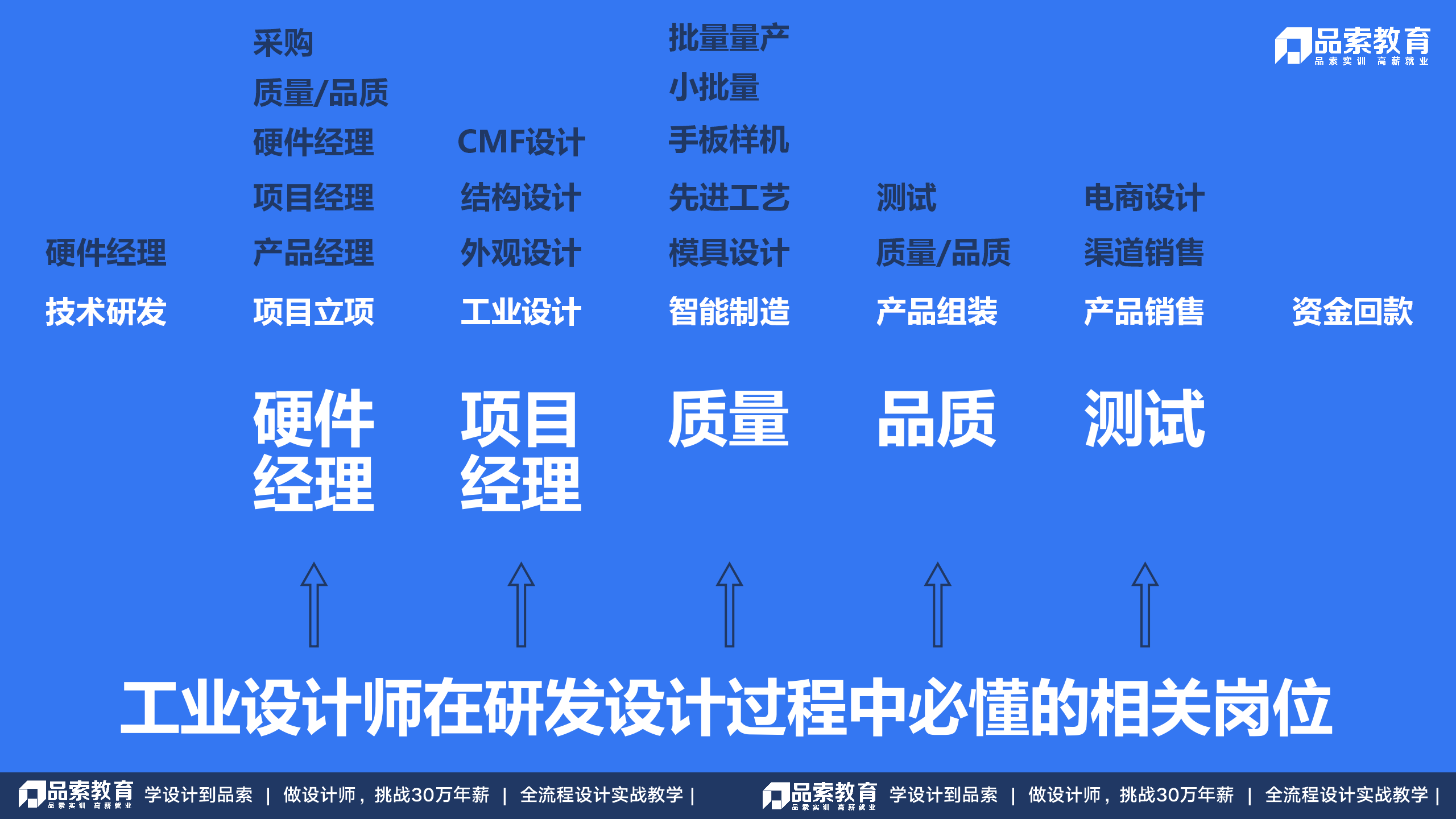 从设计到商品的整个流程,涉及多部门,多层级,全产业链。按照具体工作流程,一般可分为七个重要流程,其中涉及多个相关岗位的人员协同配合,包括产品经理、硬件工程师、项目经理、产品结构设计师、质量工程师、品质工程师以及测试工程师、模具设计师、CMF设计师、电商设计师。