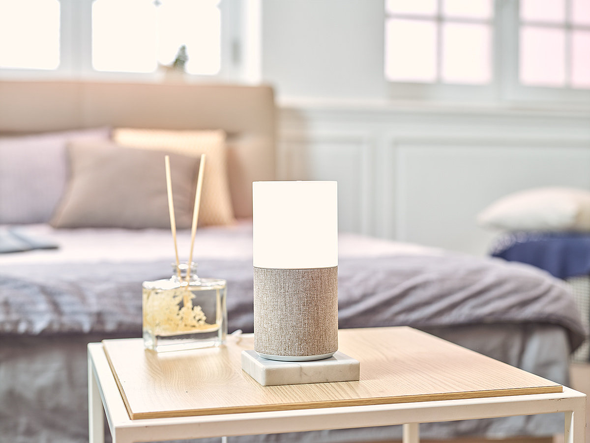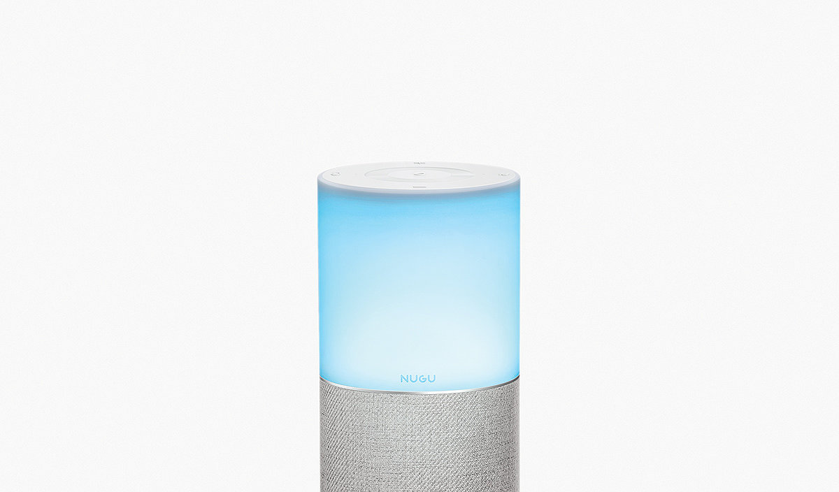 SKT NUGU 创新设计的灯具设计,具备照明功能设计,而且还是一款AI智能产品设计,满足用户一定的氛围灯的需求,同时也是一款装饰美感强化的生活工具助理,下半位置采用了织物纹理材料设计。