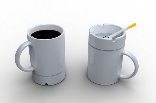 吸烟和喝咖啡都是让人容易上瘾的事情。这款咖啡杯正面是杯子,而反面是个烟灰缸。因为它只能选择一种用途——所以如果您同时对咖啡和烟都上瘾的话,不妨用这款杯子来克制一下自己的行为吧。