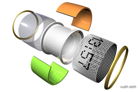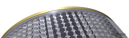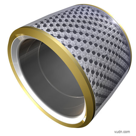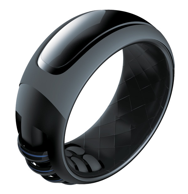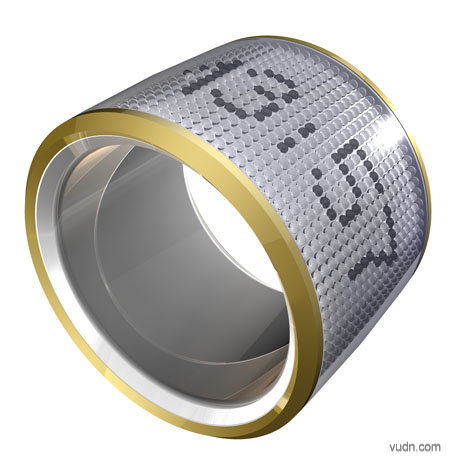 设计师Charles Windlin设计的一款珠宝指环,其中采用的是一种新型由磁性材料和装饰材料整合而成的材料,该材料被制成小球布满戒指表面,该小球在微型电路的控制下,能够旋转,产生亮暗对比,同时能够形成各种装饰性图案,显示日立,时间等。