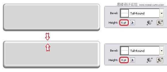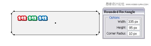 我们从创建基本的网页按钮形状开始。选择圆角矩形工具,在画板中任意位置点击一下打开圆角矩形窗口。填入如下图所示的数字以得到我们需要的形状。选择浅灰色作为填充颜色。