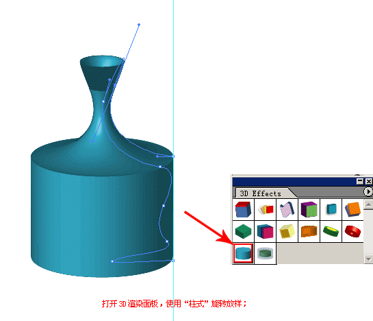 二、打开3D渲染面板,使用“柱式”旋转放样