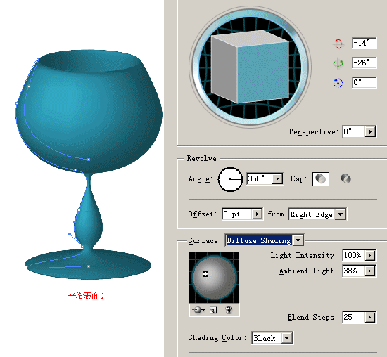 Adobe Illustrator 从CS版本开始添加的3D渲染的应该说是一个亮点功能。下面我们利用这个功能制作一个酒杯,简单说说Illustrator CS 的3D放样的使用。