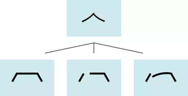 一撇一捺,两笔画组成的“人字头”,在上部添加横线或类似横线的线条之后,就会变得别致起来,拥有了鲜明的设计感,同时,由两笔组成的三角形结构,变成了类似于梯形的结构: