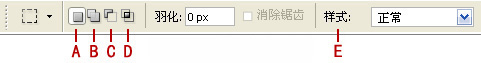E.样式:对于矩形选框工具、圆角矩形选框工具或椭圆选框工具,在选项栏中选取一个样式,
