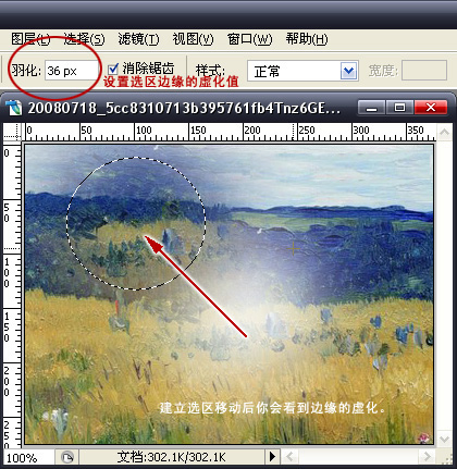 只有在使用椭圆选框工具时,这个选项才可使用,它决定选区的边缘光滑与否。