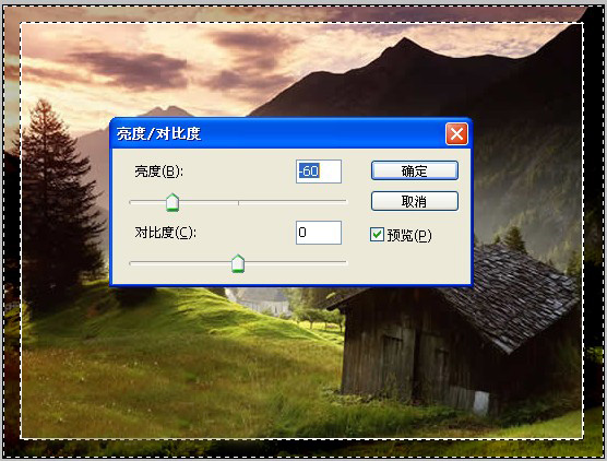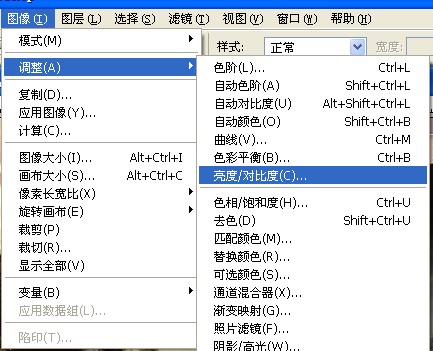 9.最后让选择的这个部分颜色变深就可以了,在菜单栏选择“图像/调整/亮度对比度”(这里大家直接操作,至于原理会在调色的部分进行讲解)